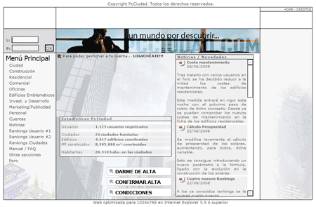 La finalidad en el juego es conseguir crear la empresa más rentable y fructífera de tu ciudad y del mundo virtual de PcCiudad.com comprando solares y construyendo en ellos, además invertiremos el investigación para crear nuevos e innovadores productos y servicios, gestionaremos nuestros comercios y nuestras empresas de servicios y mucho más...